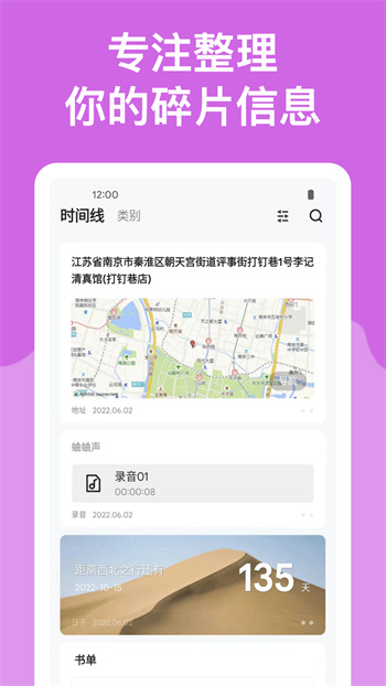 提供便簽、清單、圖片、倒數(shù)日、紀(jì)念日、心情、鏈接、地址等14種類型