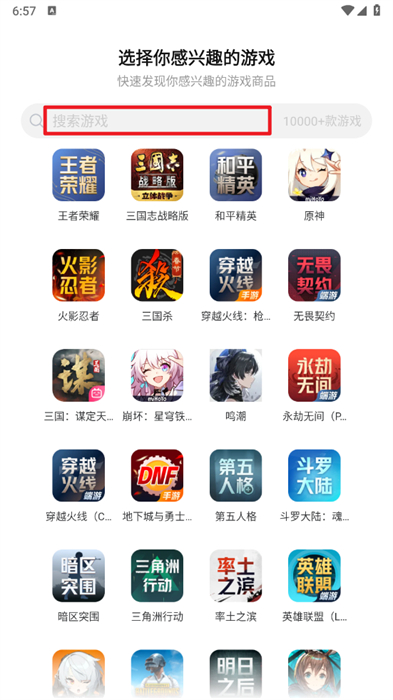 1、進入到應用之中后,可以點擊上方的搜索框,以進行感興趣游戲的搜索;