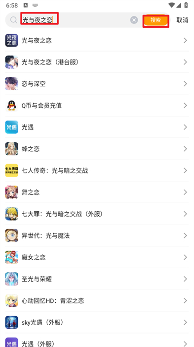 2、進入后在搜索框內(nèi)打出【光與夜之戀】,并點擊右側(cè)的【搜索】按鈕;