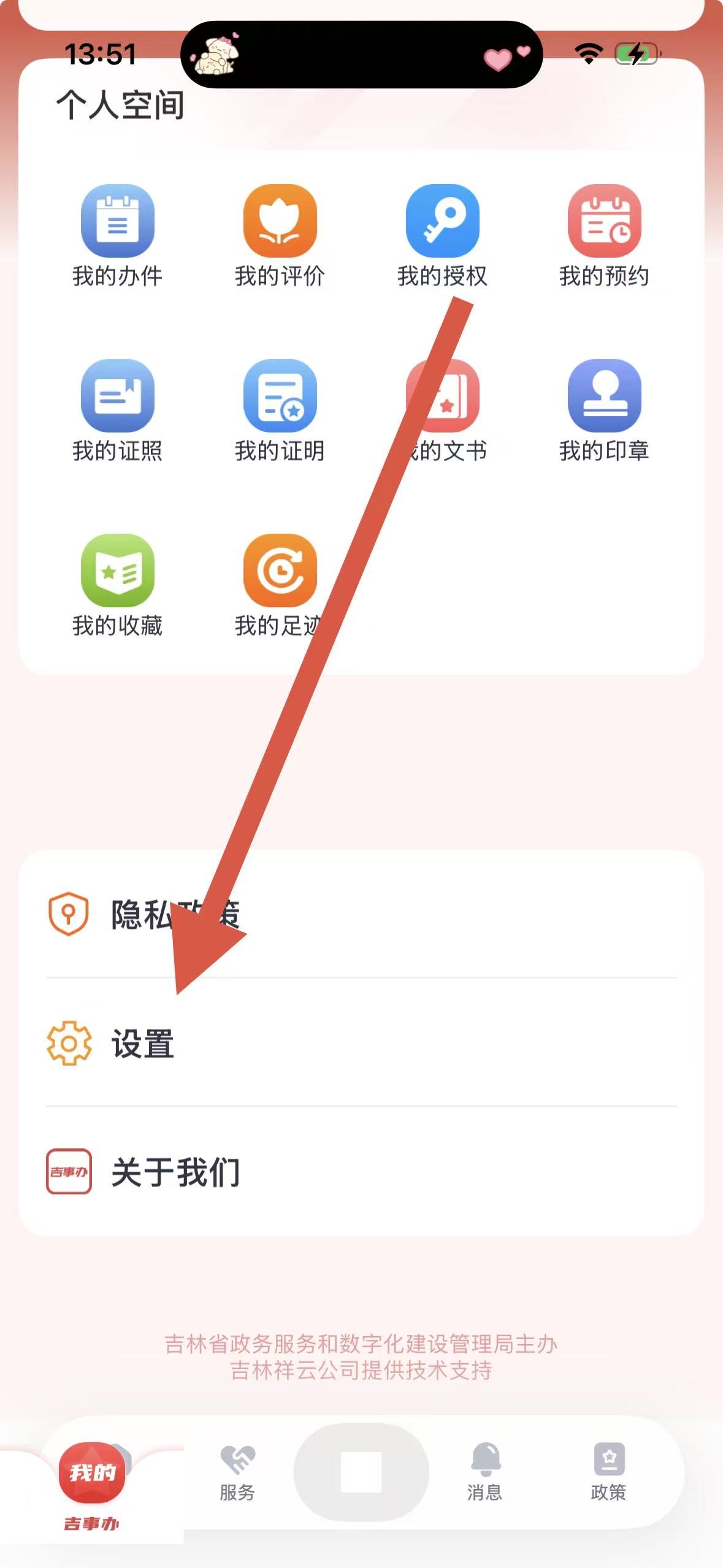1、打開吉事辦APP,在首頁點擊底部我的選項進入個人空間頁面。