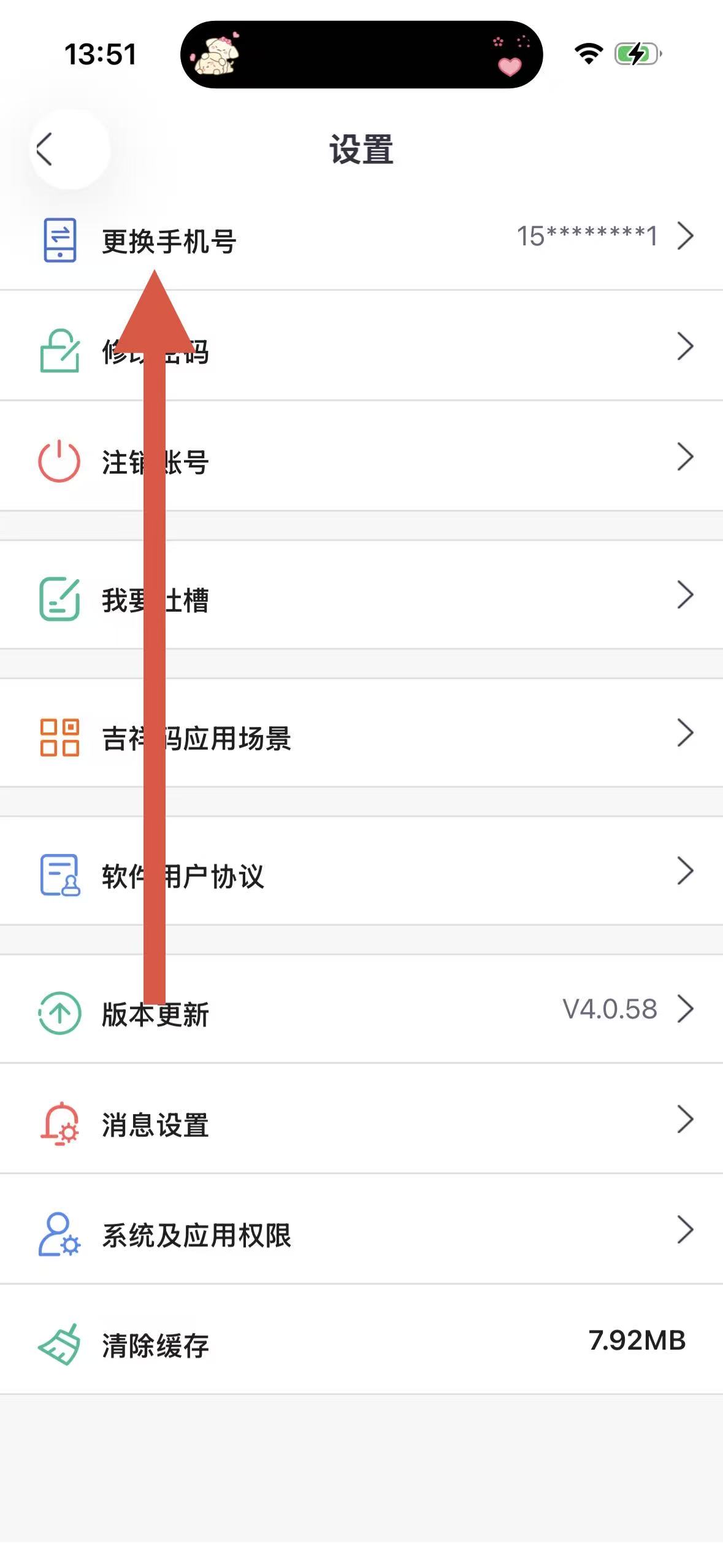 3、在設置界面中,點擊更換手機號選項,進入更換手機號頁面。