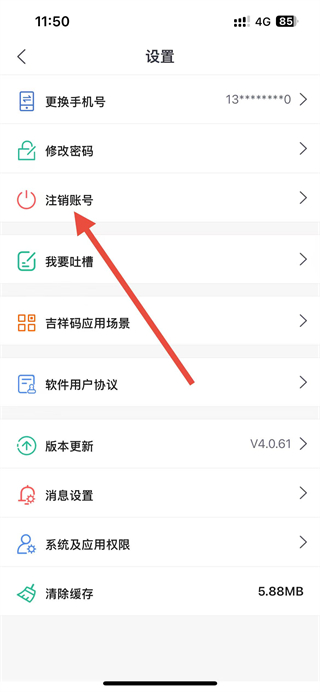 3、在設置頁面點擊注銷賬號選項,進入注銷賬號頁面。