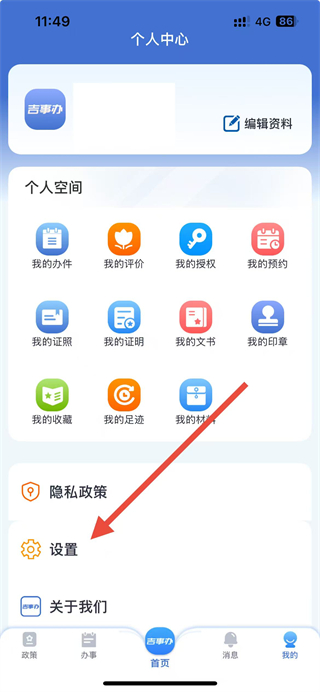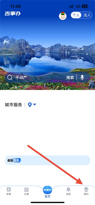 1、在吉事辦app首頁點擊我的選項,進入個人中心頁面。