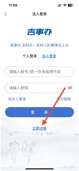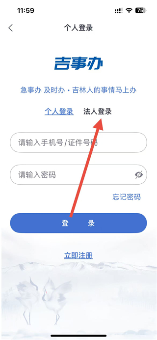 2、在登錄界面,選擇法人登錄選項,切換至法人登錄。