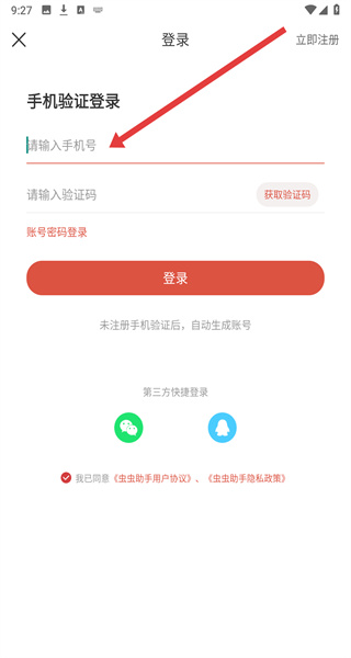 3、在跳轉(zhuǎn)到手機(jī)驗(yàn)證登錄頁(yè)面后,可以點(diǎn)擊上方輸入框輸入要登錄的手機(jī)號(hào)。