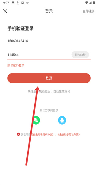 4、在點(diǎn)擊獲取驗(yàn)證碼按鈕,獲取到驗(yàn)證碼填寫(xiě)后,點(diǎn)擊登錄按鈕即可完成登錄。