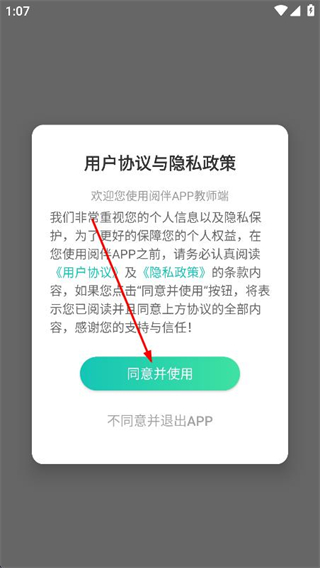 1、打開閱伴,在彈出的窗口中點(diǎn)擊同意并使用。