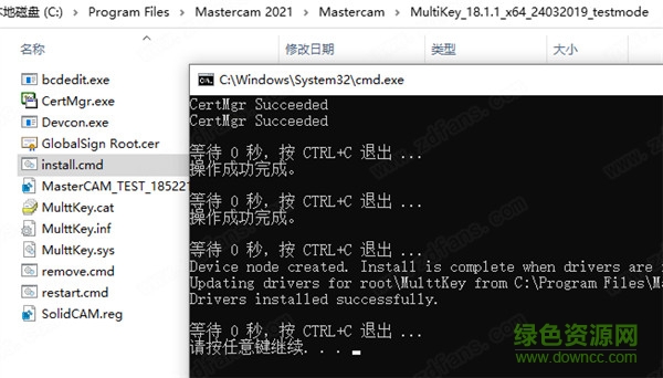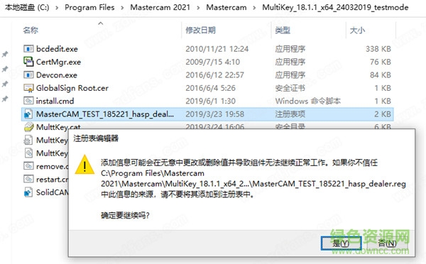 6.不要運行這個軟件,將MultiKey_18.1.1_x64_24032019_testmode文件夾復制到軟件安裝目錄下,再運行MasterCAM_TEST_185221_hasp_dealer.reg添加注冊表信息