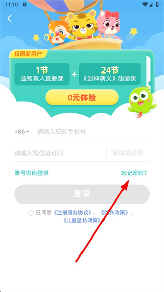 2、在個人中心界面,點擊忘記密碼,進入重設密碼界面。