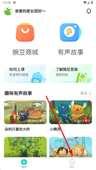 1、在豌豆素質app首頁,點擊右下角我的按鈕,進入個人中心界面。
