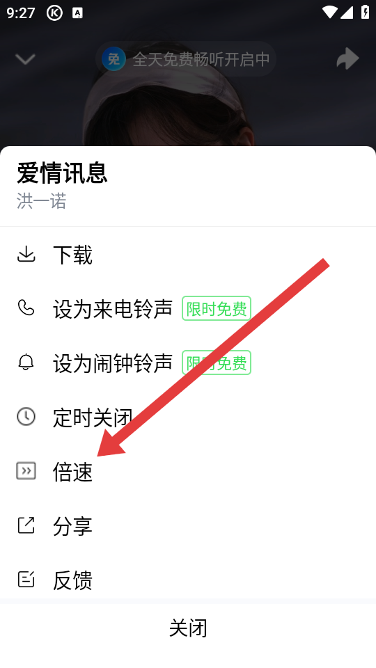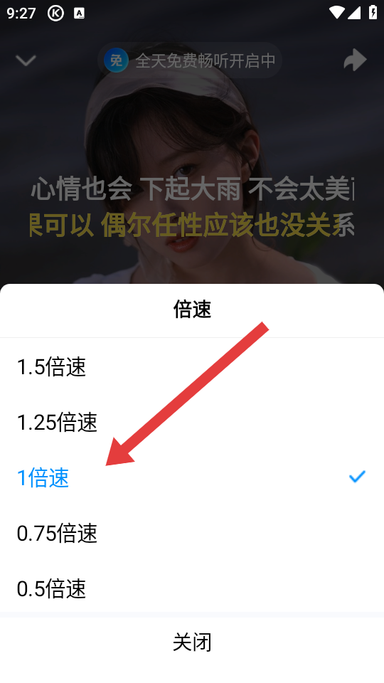 3、進(jìn)入倍速選擇的界面后,可以選擇合適的倍速如1倍速等,選擇后歌曲將以所選倍速播放。