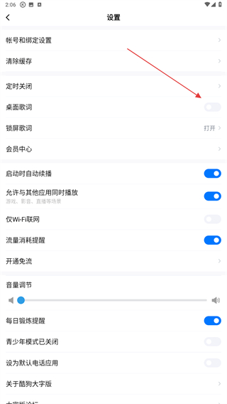 3、在設(shè)置的頁面內(nèi),找到桌面歌詞并點(diǎn)擊右側(cè)的開關(guān)。