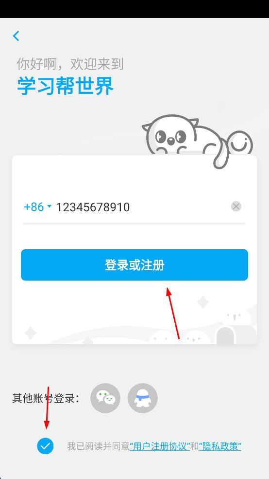 4、點(diǎn)擊“登錄或注冊(cè)”按鈕,即可完成學(xué)習(xí)幫軟件的手機(jī)號(hào)登錄操作。