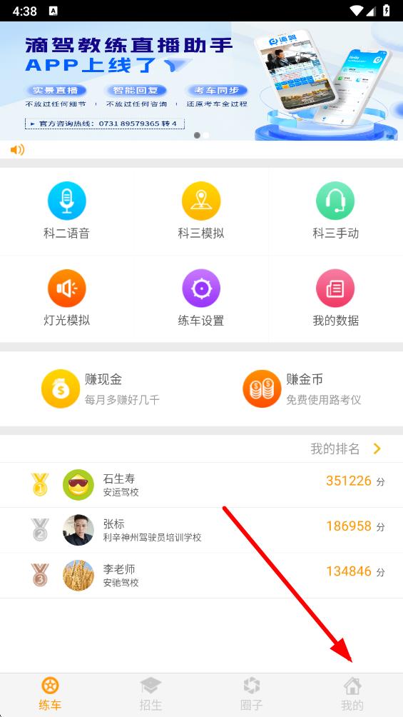 1、打開滴駕教練直播助手app,點擊底部導航欄中的我的選項,進入個人相關界面。