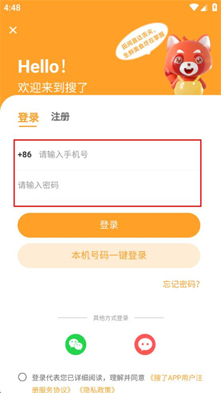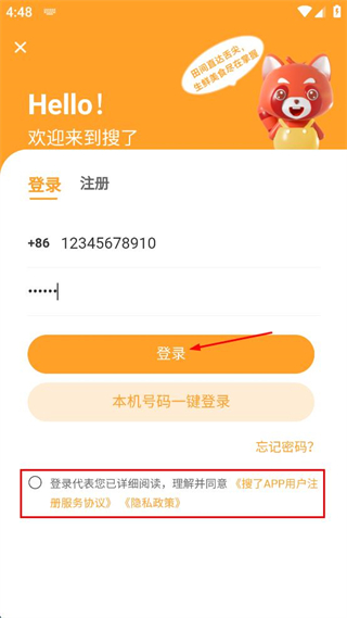 3、在登錄界面輸入手機號和密碼,勾選同意協(xié)議。