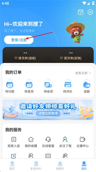 2、在個人頁面點擊登錄/注冊,進入登錄界面。