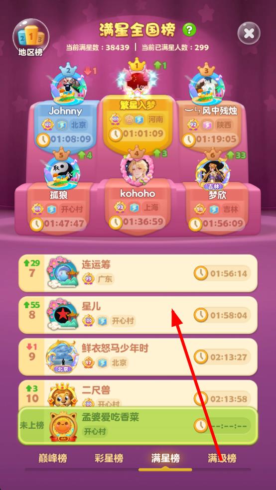 2、在榮譽(yù)排行界面中,尋找并點(diǎn)擊與連勝相關(guān)的排行榜,比如巔峰大神榜、彩星排行榜等 ,部分榜單可能會(huì)顯示連勝信息。