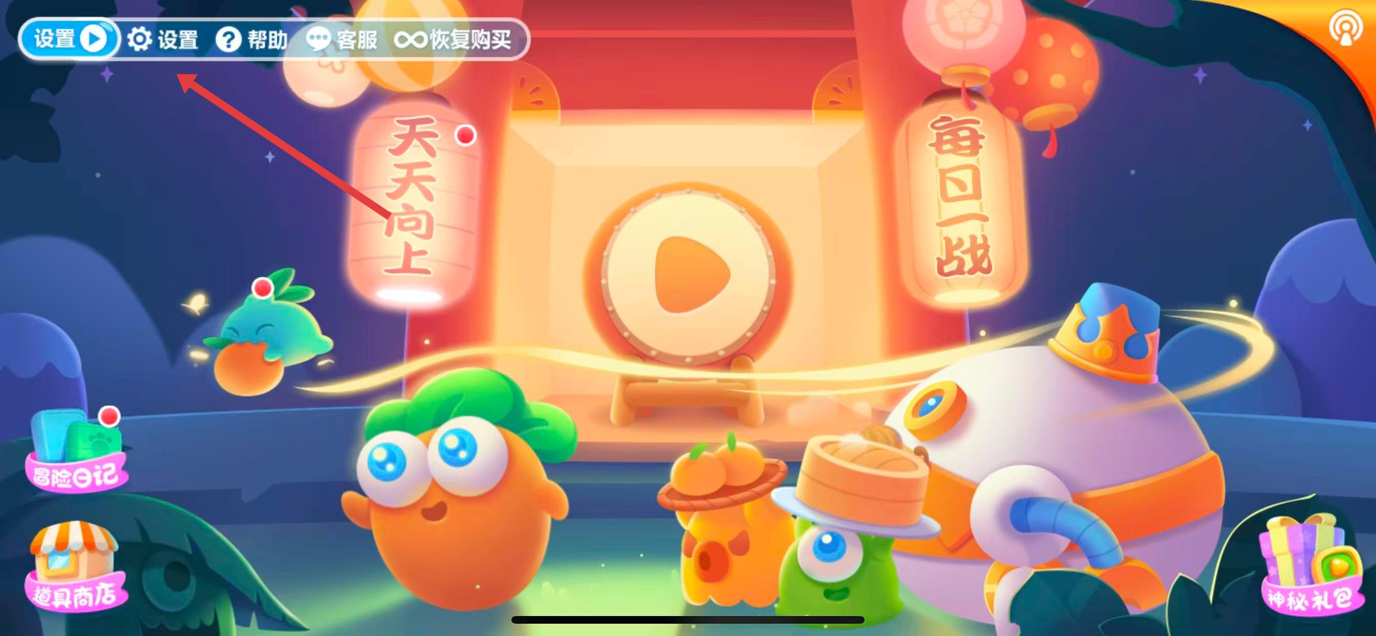 1、進(jìn)入保衛(wèi)蘿卜2游戲主界面,點擊如圖中箭頭所指的播放按鈕,先進(jìn)入到游戲關(guān)卡選擇等相關(guān)界面。