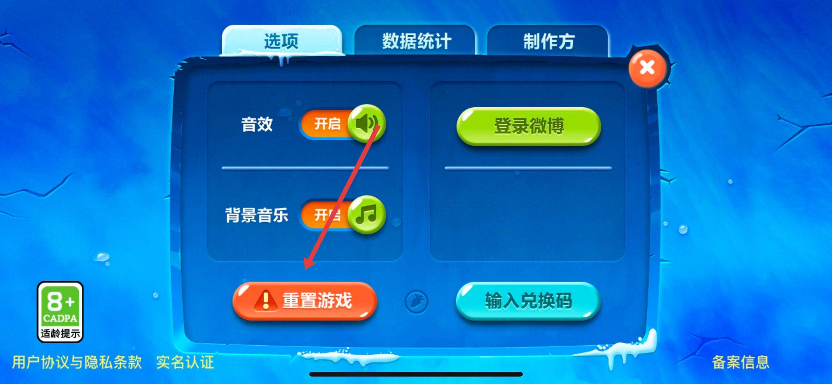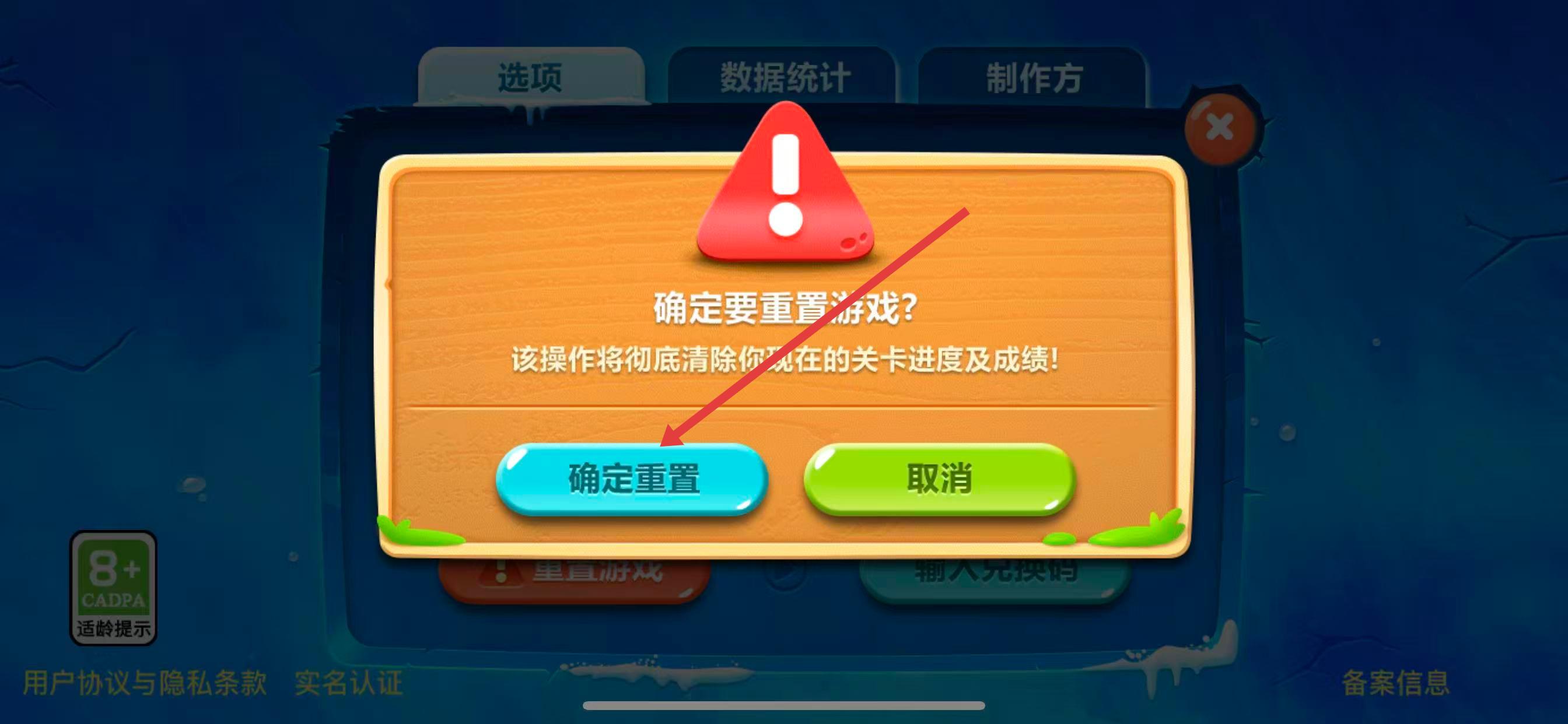 3、在設(shè)置菜單里,找到并點擊重置游戲按鈕,此時會彈出確認(rèn)提示。