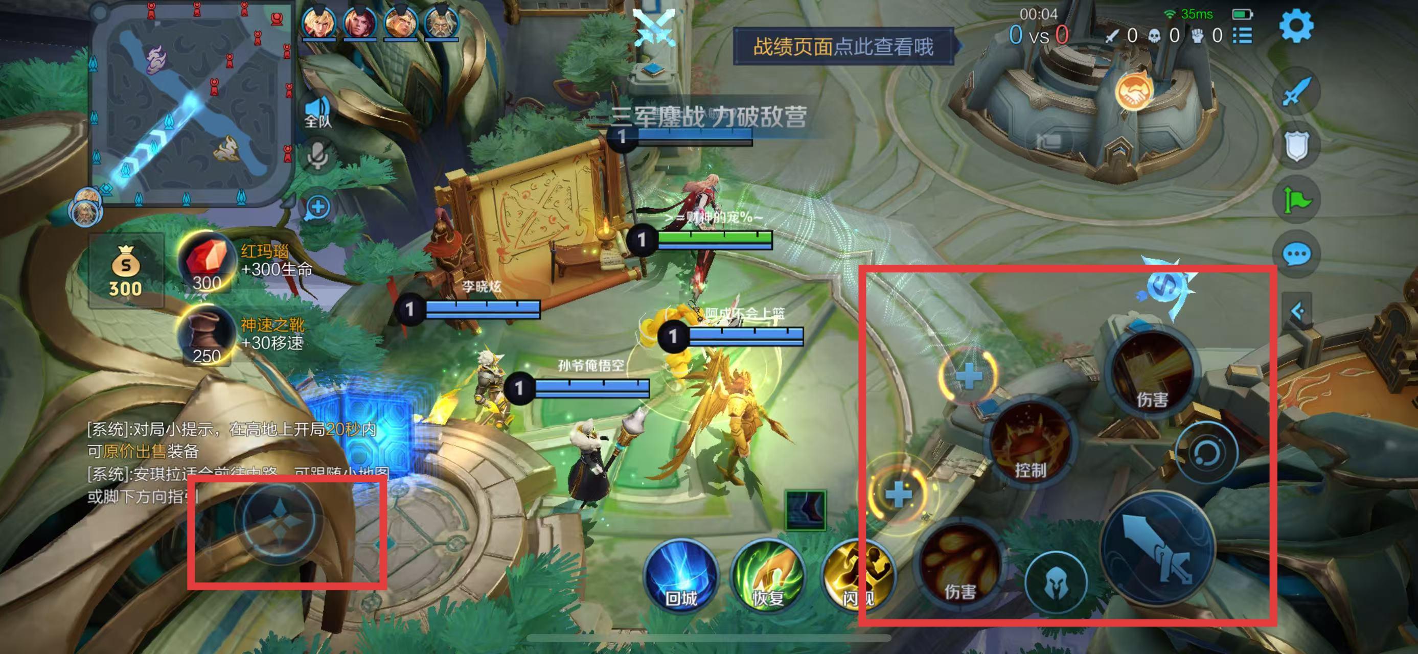 3、進入游戲?qū)趾?,通過屏幕左下方的虛擬搖桿控制英雄移動,利用右下方的技能按鈕釋放技能來攻擊敵人、清理兵線,進而推掉敵方防御塔和水晶獲取勝利。