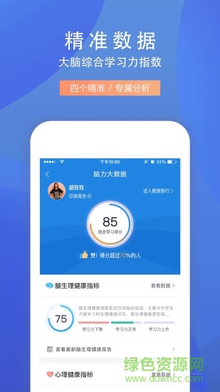 腦力人工智能app是面向中小學(xué)生推出的腦力測試與教育軟件。提供了專業(yè)精準(zhǔn)的腦力報告分析以及大腦綜合指數(shù)統(tǒng)計功能。幫助學(xué)生們找到正確的腦力提升方法,真正專注于大腦開發(fā)教育!趕快來綠色資源網(wǎng)下載體驗吧。