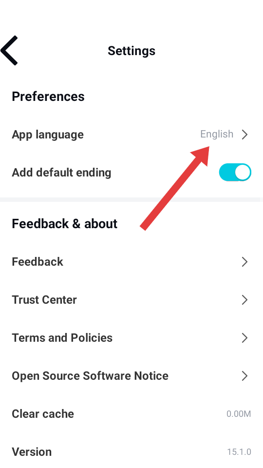 2、在設(shè)置頁面,點擊App language選項,進入應(yīng)用語言選擇界面。