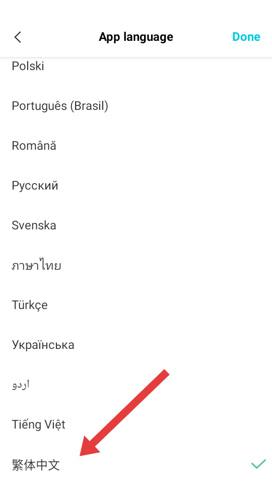 3、在App language列表中,找到并點擊繁體中文選項,將其設(shè)為應(yīng)用語言。