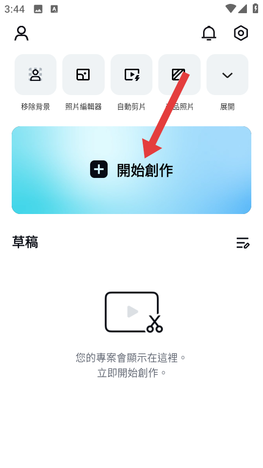 1、在CapCut主界面,點擊右上角齒輪形狀的設(shè)置圖標,進入設(shè)置界面。
