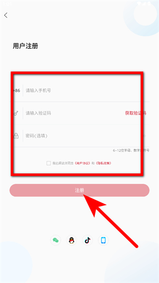 4、在用戶注冊頁面,填寫信息并勾選協(xié)議后,點擊注冊按鈕,即可完成賬號注冊。