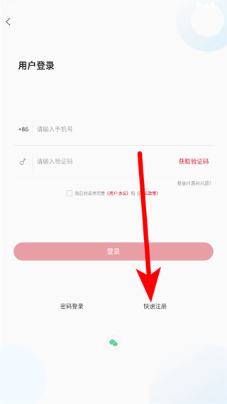 3、在用戶登錄界面,點擊快速注冊選項,進入用戶注冊頁面。