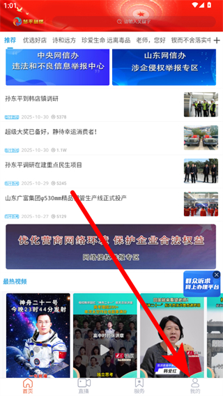 1、在鄒平融媒app首頁,點擊右下角我的選項,進入個人頁面。
