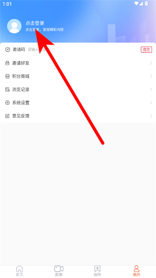 2、在個人頁面,點擊點擊登錄區(qū)域,進入用戶登錄界面。