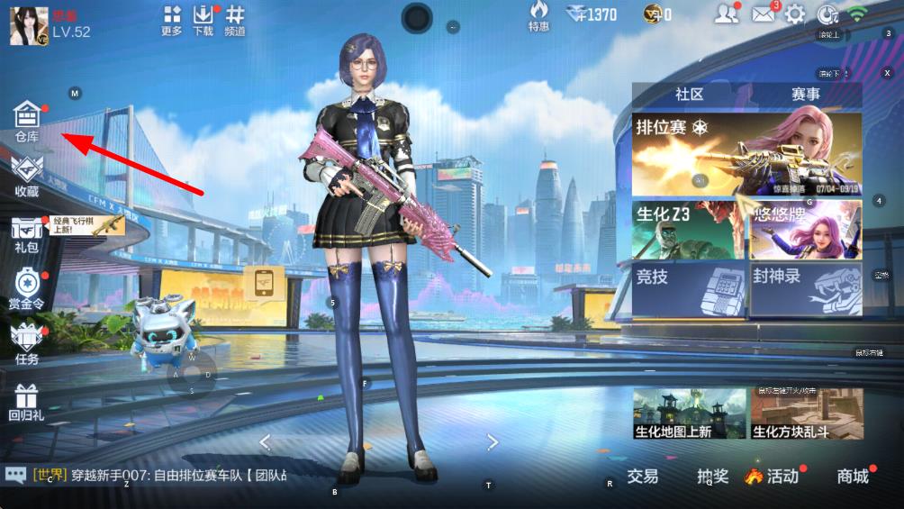 1、打開穿越火線游戲,在游戲主界面點擊左側菜單欄中的倉庫選項。