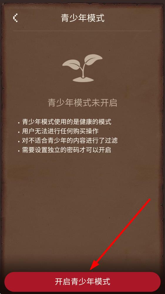 4、在青少年模式界面,點擊開啟青少年模式按鈕,按照提示設(shè)置獨立密碼,即可成功開啟青少年模式。