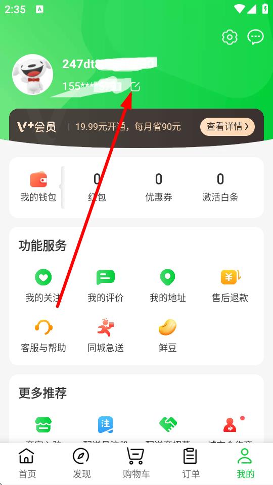 2、在我的頁(yè)面,點(diǎn)擊頭像右側(cè)的編輯圖標(biāo)。