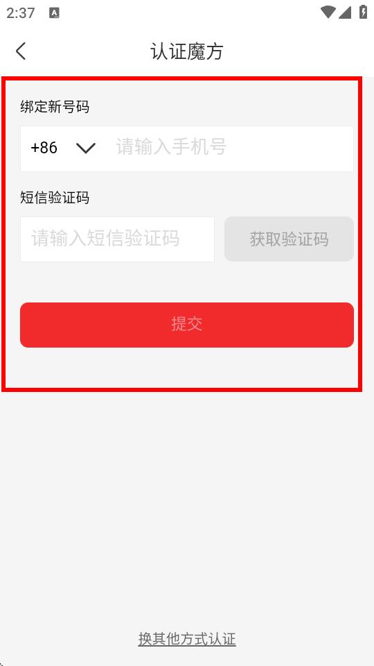 4、進(jìn)入認(rèn)證魔方頁(yè)面,輸入新的手機(jī)號(hào),點(diǎn)擊獲取驗(yàn)證碼,收到驗(yàn)證碼后填入對(duì)應(yīng)框內(nèi),點(diǎn)擊提交,即可完成手機(jī)號(hào)修改。