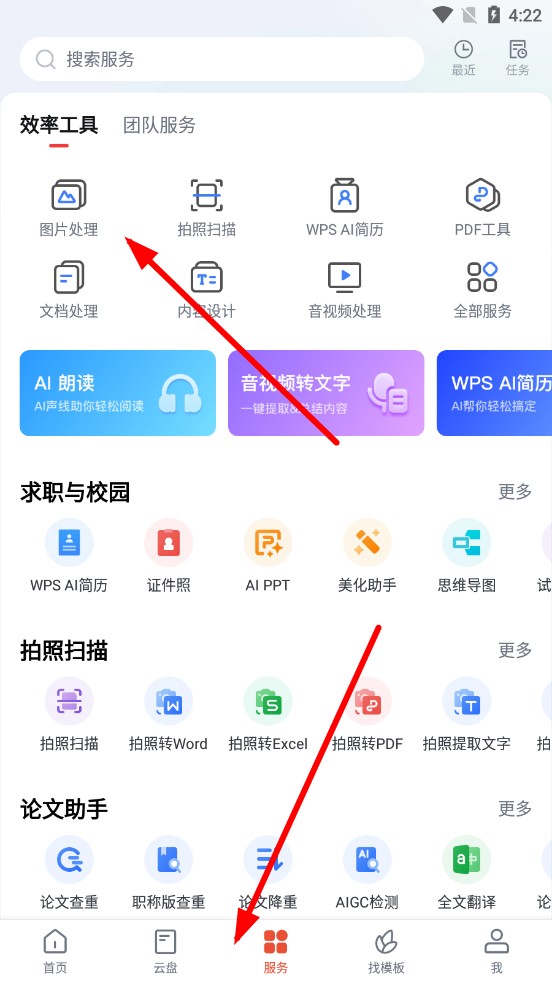 2、點擊服務(wù),在效率工具板塊,選擇所需的服務(wù)。