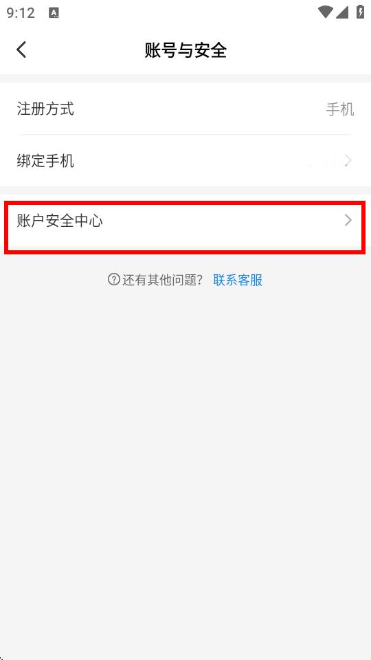 3、在賬號(hào)與安全頁面,點(diǎn)擊賬戶安全中心進(jìn)入賬戶安全中心界面。