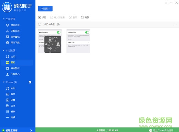 3、點擊照片選項,在界面右側(cè)就會顯示出你在本地的照片。同樣,你也可以對這些照片進行管理,你可以添加照片也可以講不喜歡的照片刪除。