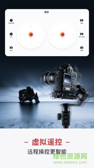 點擊遙控,可用觸碰屏幕調整穩(wěn)定器三軸位置、速度設置、歸中、自拍、錄制/停止、拍照。