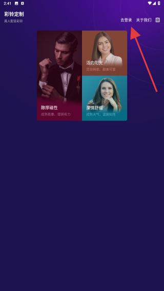 1、打開彩鈴定制APP進入到首頁內(nèi),點擊右上角去登錄的按鈕。