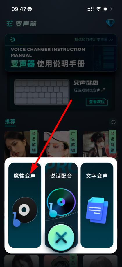 2、在功能選擇界面,點(diǎn)擊魔性變聲選項(xiàng),進(jìn)入相關(guān)操作頁(yè)面。