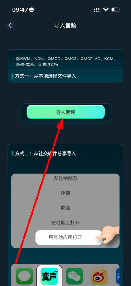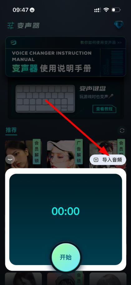 3、進(jìn)入魔性變聲頁(yè)面后,點(diǎn)擊導(dǎo)入音頻按鈕,進(jìn)入導(dǎo)入音頻的選擇界面。
