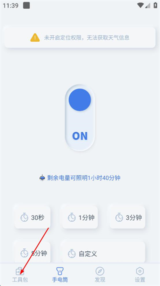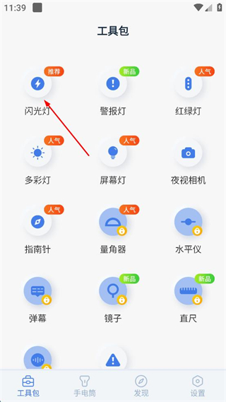 2、在工具包界面,點擊“閃光燈”圖標(biāo),進(jìn)入閃光燈設(shè)置界面。