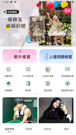 1、打開你我當年APP,進入首頁后點擊照片修復選項。