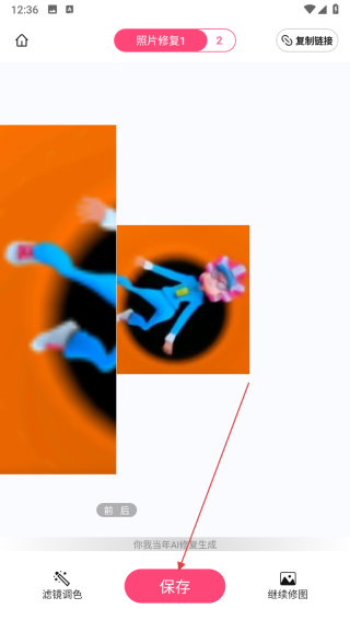 4、處理完成后,在歷史記錄中查看修復效果,預覽滿意后點擊保存。