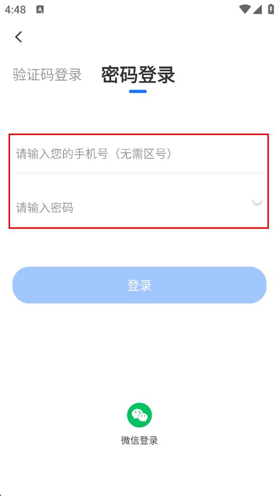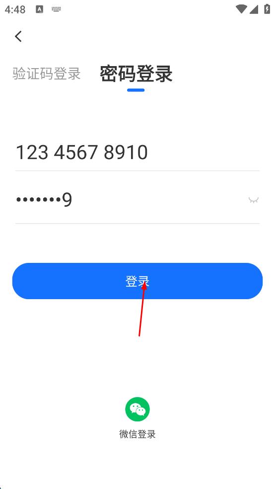 3、在密碼登錄頁面,輸入手機號和密碼,確保信息準確無誤。