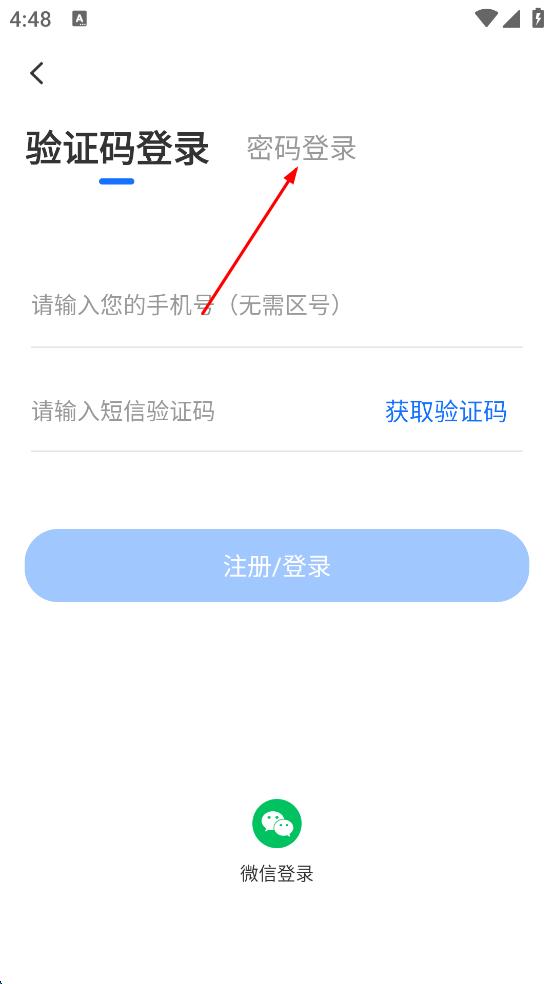 2、在登錄方式選擇頁面,點擊“密碼登錄”選項,進入密碼登錄頁面。