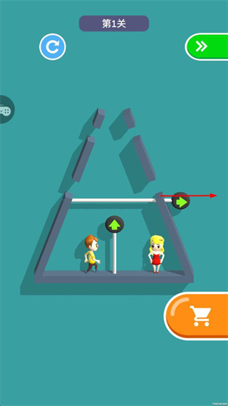 2、點(diǎn)擊右側(cè)箭頭按鈕,觸發(fā)場(chǎng)景內(nèi)的機(jī)關(guān)移動(dòng),調(diào)整中間裝置的位置。