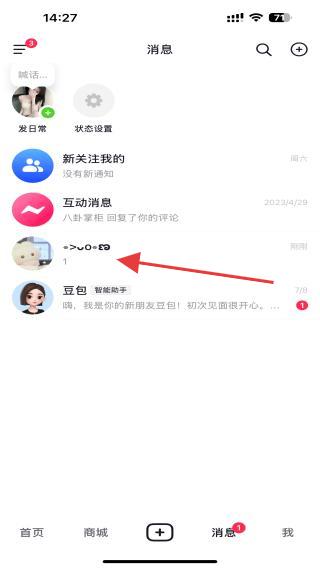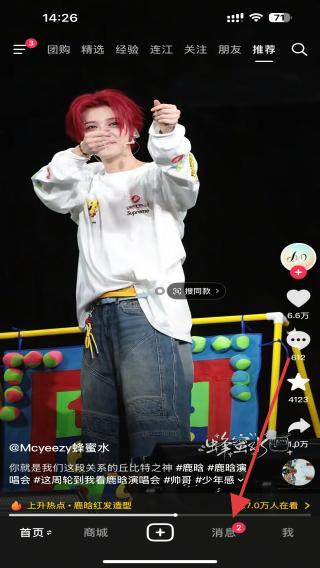 1、啟動(dòng)抖音軟件,點(diǎn)擊底部導(dǎo)航欄的消息的圖標(biāo)。